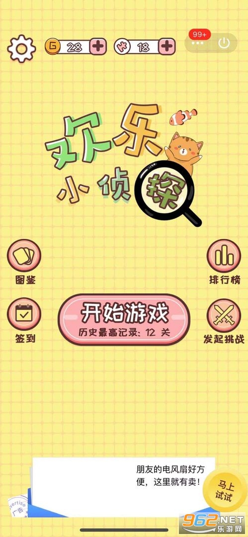 欢乐小侦探是一款非常考验玩家观察能力的休闲烧脑游戏,在这个虚拟的谜题世界中,有着一位非常有名的小侦探,他通过异于常人的观察能力和超快的思考速度让每一个难以回答的难题都迎刃而解。在欢乐小侦探游戏中,玩家将扮演这位聪明的小侦探进行游戏,不断的观察每一关中的细节点,通过不断的思考来解决每一关的难题。
