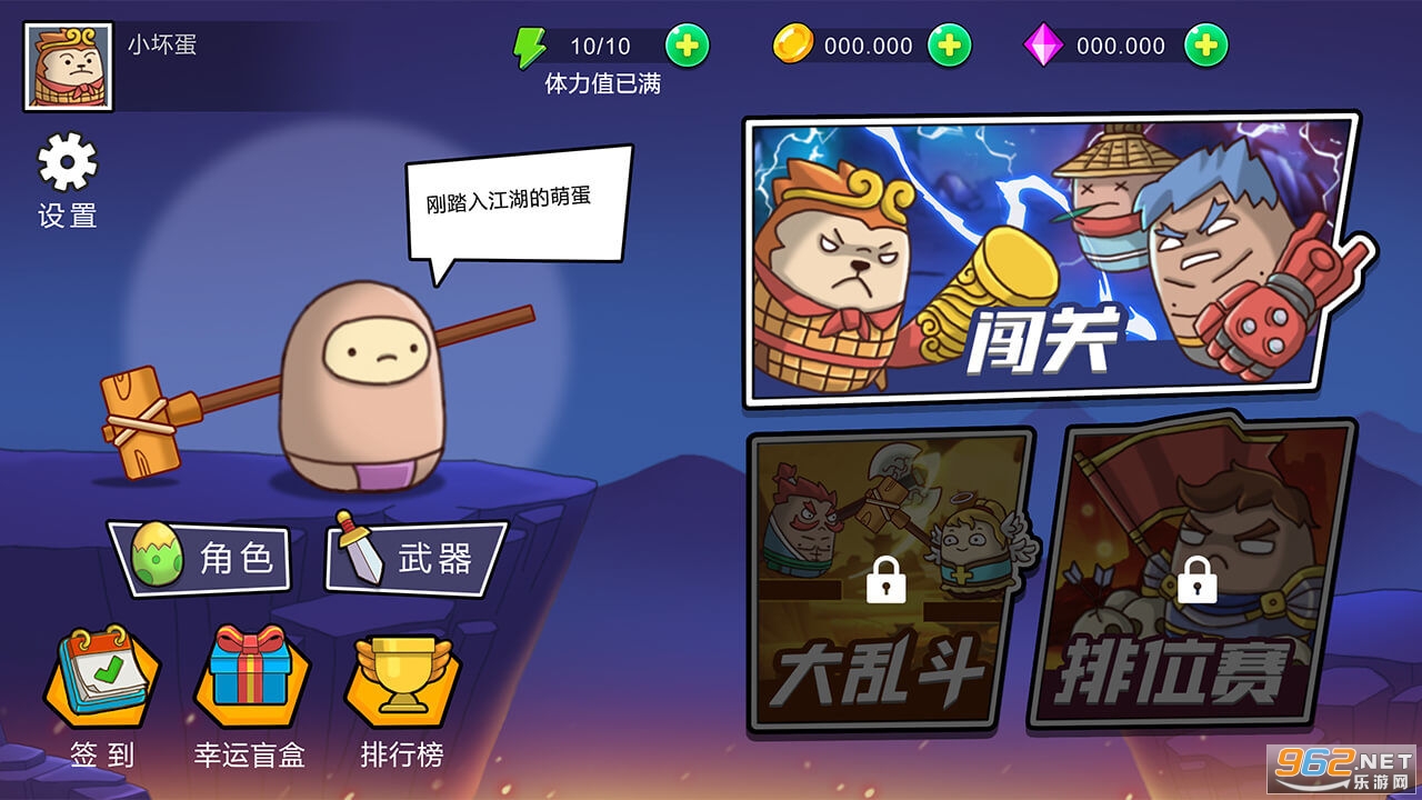 一款简单有趣的休闲对战游戏,游戏中量化身为蛋蛋来进行对战,通过锤子来打爆坏蛋,游戏的玩法轻松有趣,解锁不同造型的武器,还有着多种模式和玩法,推荐给喜欢休闲游戏的玩家。