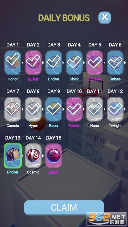 2、皮肤多样,通过完成关卡,玩家可以解锁更多的篮球皮肤,头盔、轮胎等等。