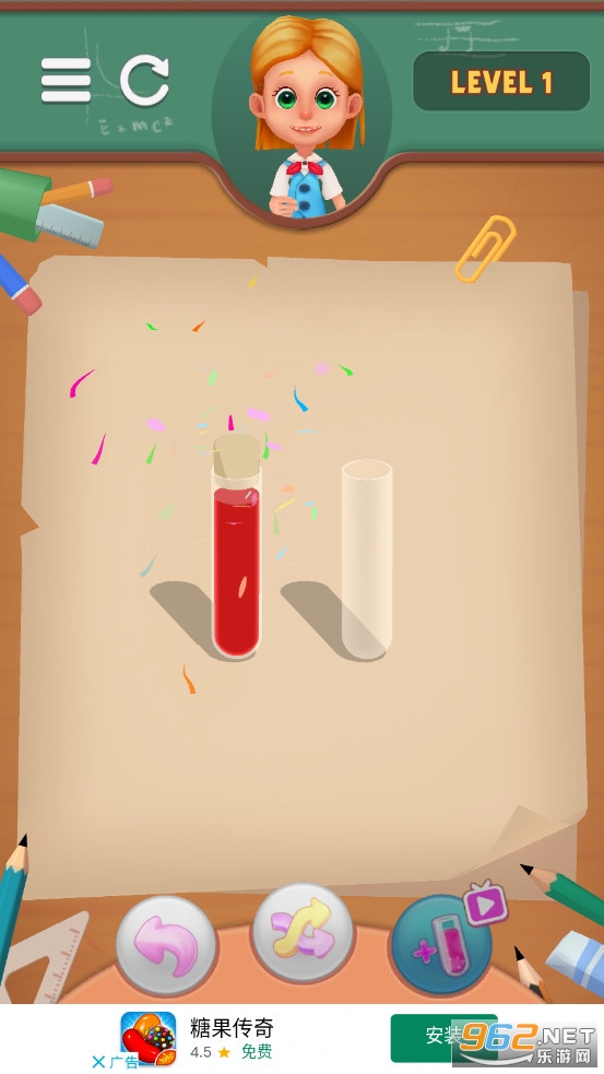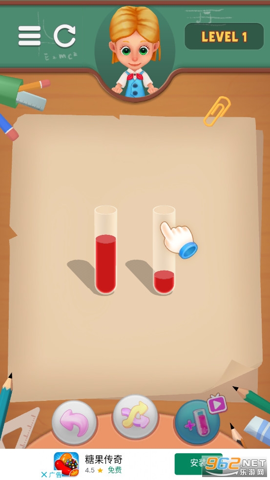 一款最近比较火的倒水益智解谜游戏,游戏中你需要将不同颜色的液体成功分离,游戏的操作简单容易上手,点击任意一两个试管来进行倾倒,游戏的玩法轻松有趣,还有着多样的关卡,推荐给喜欢益智游戏的玩家。