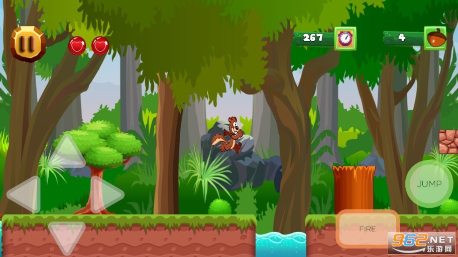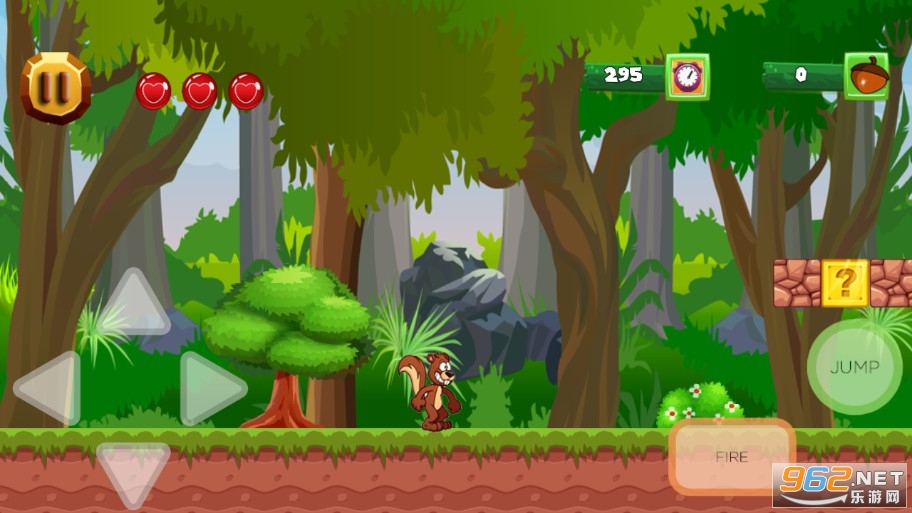 2、游戏玩法十分简单,只需要控制小松鼠前进或后退,还有跳跃键,尽量的收集更多硬币和道具。