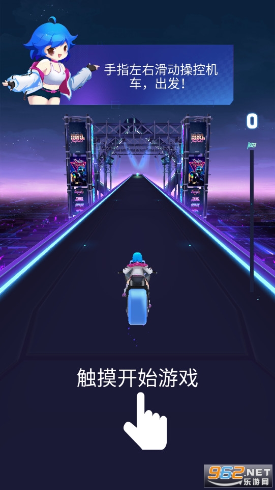 欢迎来到酷酷的摩托车盛宴,也是一个音乐的盛宴。《炫音狂潮》将是你感受音乐律动以及摩托车竞速的游戏,让你指尖感受这个律动。指尖左右滑动即可,操作简单。有各种音乐供你选择,快来加入吧!