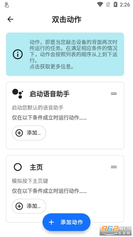 《双击背部taptap》是一款为朋友们打造的双击手机背部启动一些命令的软件,比如不少的朋友手机截屏不是很方便,或者想要更加的方便,可以使用本款软件来帮助你轻松快速截屏,安装软件添加截屏操作,想要截图的时候快速轻击两下手机背部即可截屏。