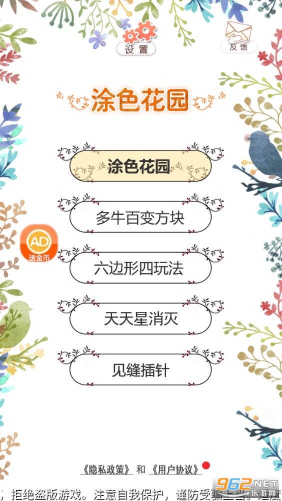 《数字填色涂色花园安卓版》是一款非常好玩有趣的趣味休闲涂色游戏,简单的游戏玩法,轻松的游戏体验,玩家需要为画中的框进行上色,创造美丽富有生机的图画,操作简单,是你打发时间的最好选择,感兴趣快来962下载试试吧!