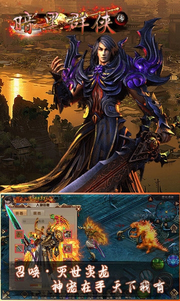 暗黑群侠满v版内含武神、剑侠和天师三大职业,颠覆传统游戏玩法;画面表现以暗黑风格为主,搭配华丽装备,给人极强的视觉体验;热血超福利版,全民满V,送首充,送RMB,万人战场,公平竞技PK,快来携兄弟一起争夺皇城!