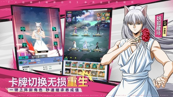 集结动画中登场的角色,组建你的梦幻队伍。幽助、桑原、飞影、蔵马、幻海、户愚吕弟、仙水、黄泉等人气角色全员登场!根据不同情况,灵活运用各种角色和技能组合,改变战局!