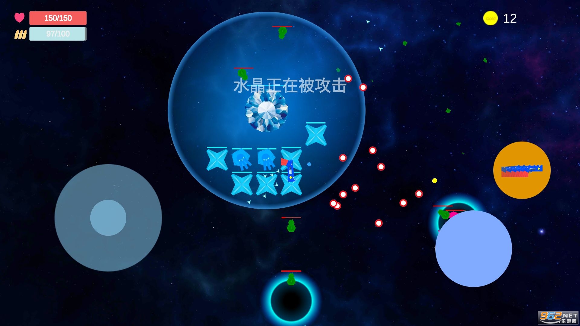 特遣小队在护送能量水晶时遭遇的埋伏,全队覆没,你是一把从未发射过子弹的善良之枪,能量水晶似乎与你产生了某种联系,你能够控制自己,敌人越来越多,请保护好自己和能量水晶,等待援军的到来。