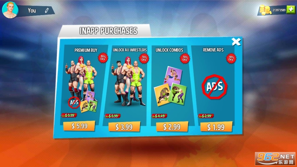 擂台摔跤冠军是一款非常真实的动作格斗游戏。欢迎来到拳击摔跤的世界,在这里你可以与对手进行一场酣畅淋漓的比拼。比赛第一、友谊第二,比赛只论输赢,所以尽管放开手去打吧!输了也不要紧,整理一下重新出发就是了,金腰带终有一天是属于你的!游戏内金币为无限。