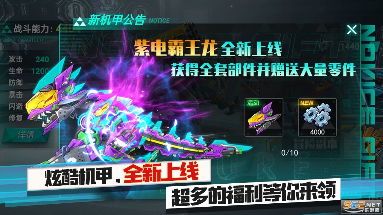 -全新机甲:紫电霸王龙全新上线,有机会获得全套部件并赠送大量零件。