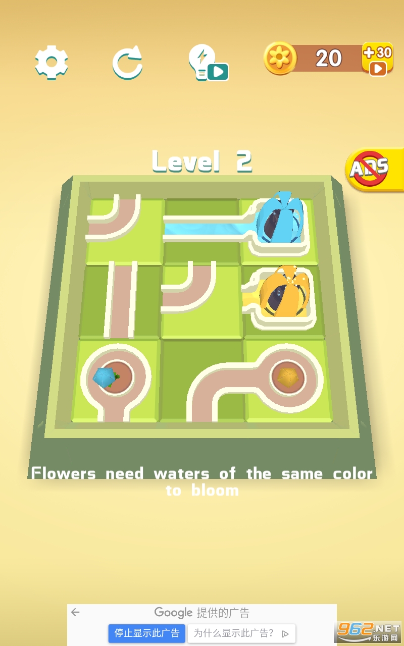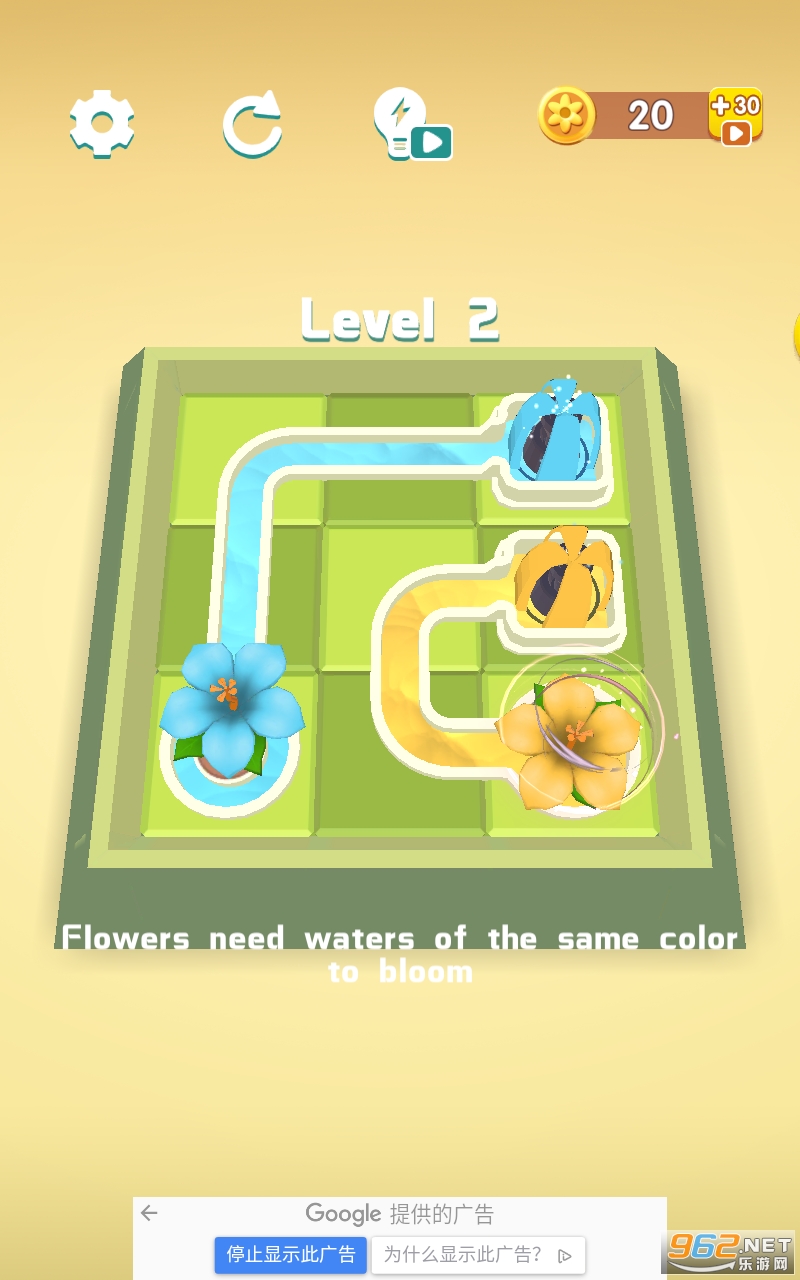 尝试通过改变水道使正确的水流向相应的花,当所有的花都被相应颜色的水浇灌时......恭喜!你完成游戏!而且你会看到鲜花盛开的美丽过程!