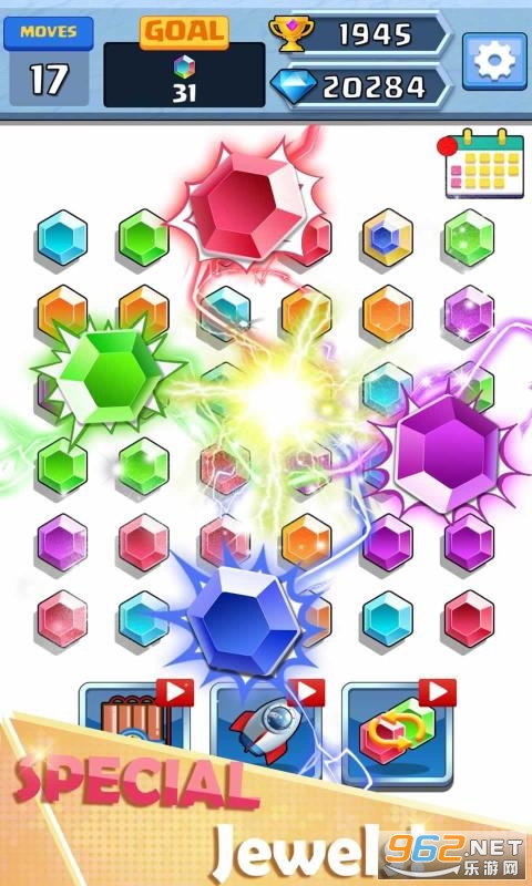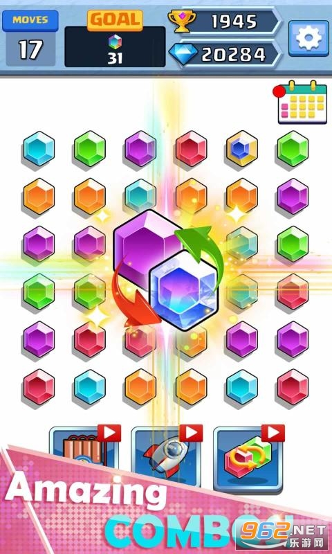 3、多彩宝石消除游戏,有大量的关卡等你来挑战,通过滑动或者点击来消除宝石。