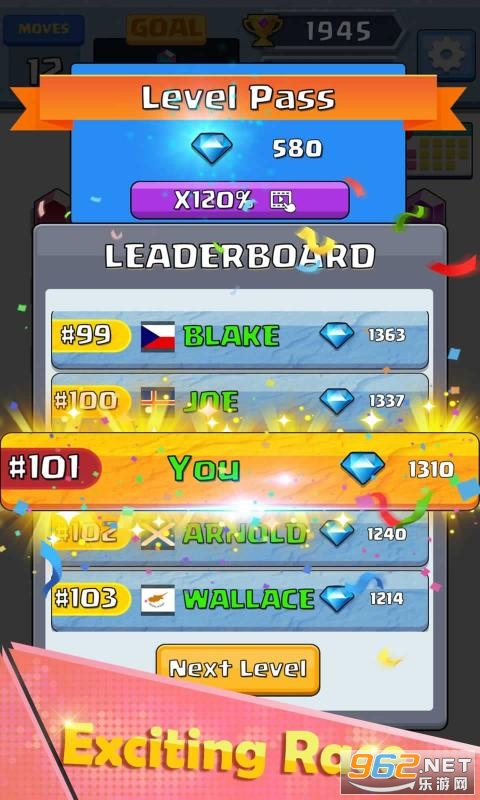 对相同颜色的宝石相连配对,进行消除得分,听着带有节奏感的背景音乐玩这款游戏会更有感觉,在消除闯关的时候大家还能借助各种道具来加快自己消除宝石的效率,使用道具大面积消除,一次性累积超多积分。