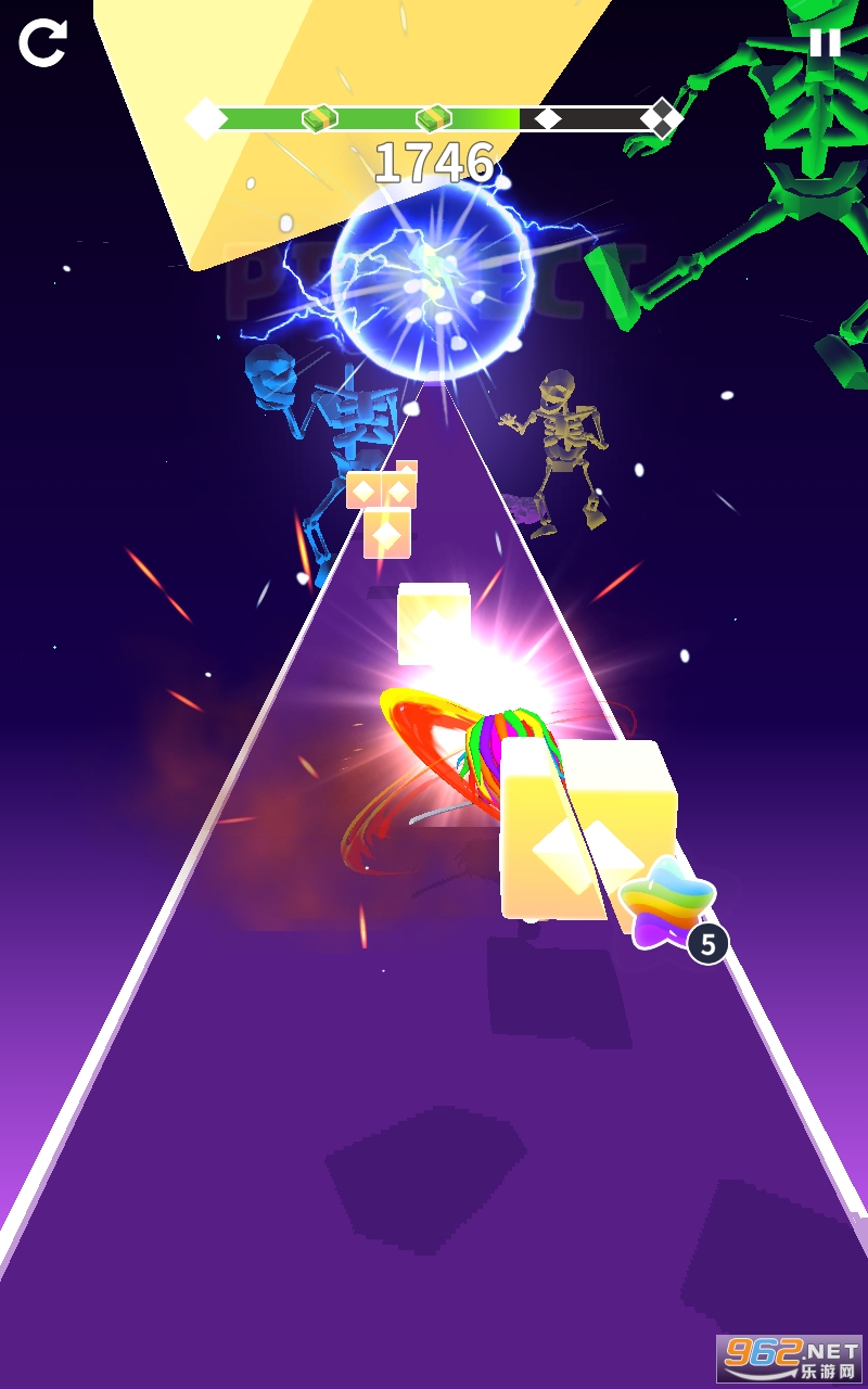 2、但是在难度上会加强很多,当音乐的音符节拍飞向你时,必须根据形状来滑动相应的方向;
