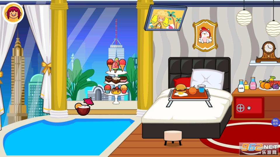 迷你城镇农场乐园带你探索假扮中纽约市所提供的一切!点击地图即可开始探索场地!探索布鲁克林大桥,并从摊贩那里获得甜甜圈!跳上桥上的快速缩放汽车,然后前往下一个目的地!探索百老汇,所有著名音乐剧和表演都在纽约举行!进入更衣室,尝试所有非凡的服饰!看看中央公园,它是纽约美丽的公园和场地之一!跳上船,或去城堡,晚上看烟花表演!