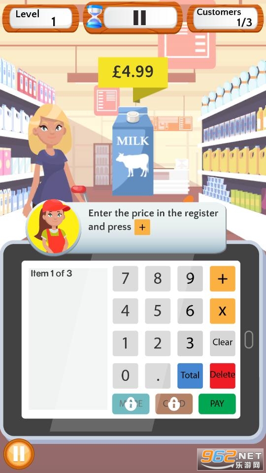 2、计算出零钱,然后从杂货店获取金币。看看您是否可以完成超市收银员的所有级别;