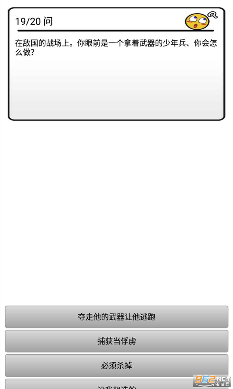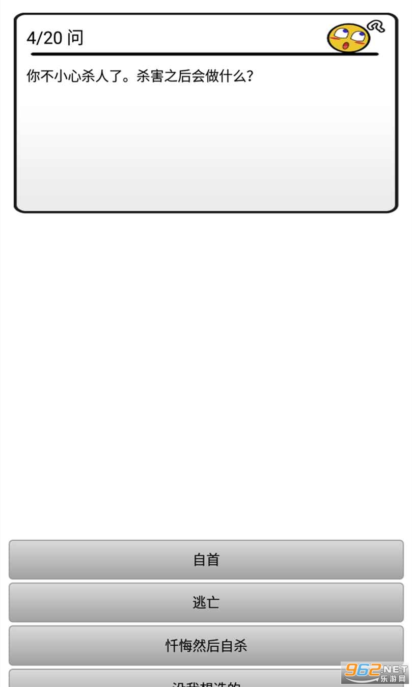 一款能够测试你变态程度的小游戏,通过回答问题来对自我进行诊断,问题就只有20个,很快就能够回答完,快来完成测试看看你的变态程度到底有多少吧!