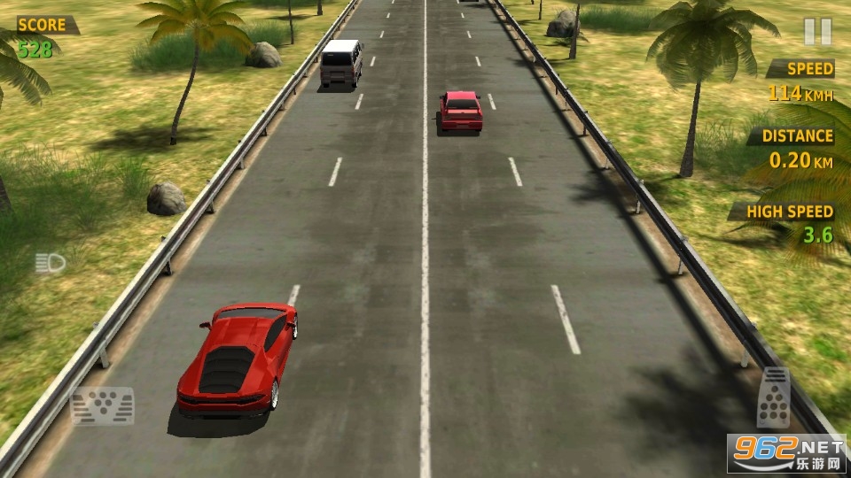 《公路赛车手中文版》是一款经典的重力感应操作的赛车竞速手游,采用3D精美画风,除了重力感应操控赛车赛道外,屏幕下方左右两边的按钮还可以控制速度,加速还是减速都需要玩家自己斟酌,有点考验技巧哦。