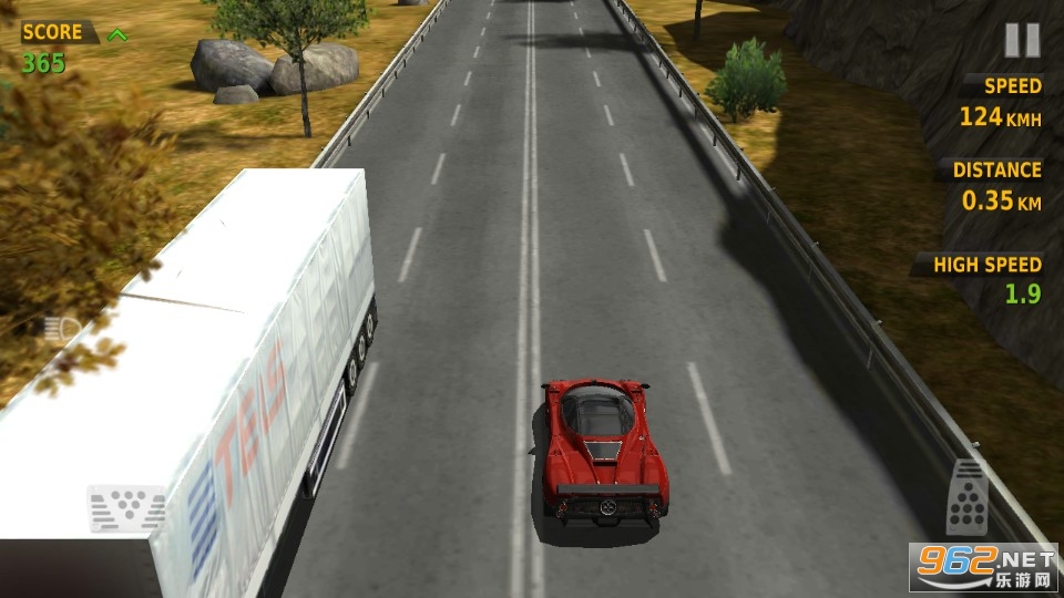 激爽的3D竞速赛车手游,与3D跑酷游戏的重力感应操作类似,但是本作加入了加速与减速的按键控制赛车速度,不管是弯道漂移还是特技超车都需要玩家比较好的操作技巧。