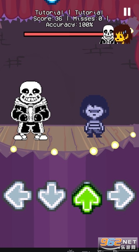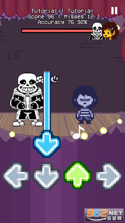 《传说之下周五音乐大战》是一款十分考验手速的音乐节奏对战游戏,在十分欢快的背景音乐中寻找自己的节奏,手指快速飞舞点击屏幕,去匹配落下的音符箭头,就能发出美妙的音乐,玩起来特别带感相当解压,大家可以自由选择背景音乐,不同的音乐能让你有不一样的体验。