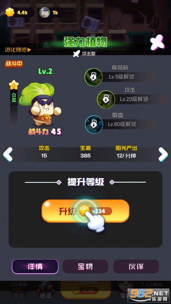 《植物进化史游戏》是一款画面清新的采用Q版风格的塔防闯关手游,游戏加入了大白菜、蘑菇、南瓜等众多的植物,可以通过开启盲盒来获得各种各样的植物,一些植物一起上阵还可以激活属性加成,可以升级植物的等级和技能,提高攻击力,抵御僵尸的一次次进攻。