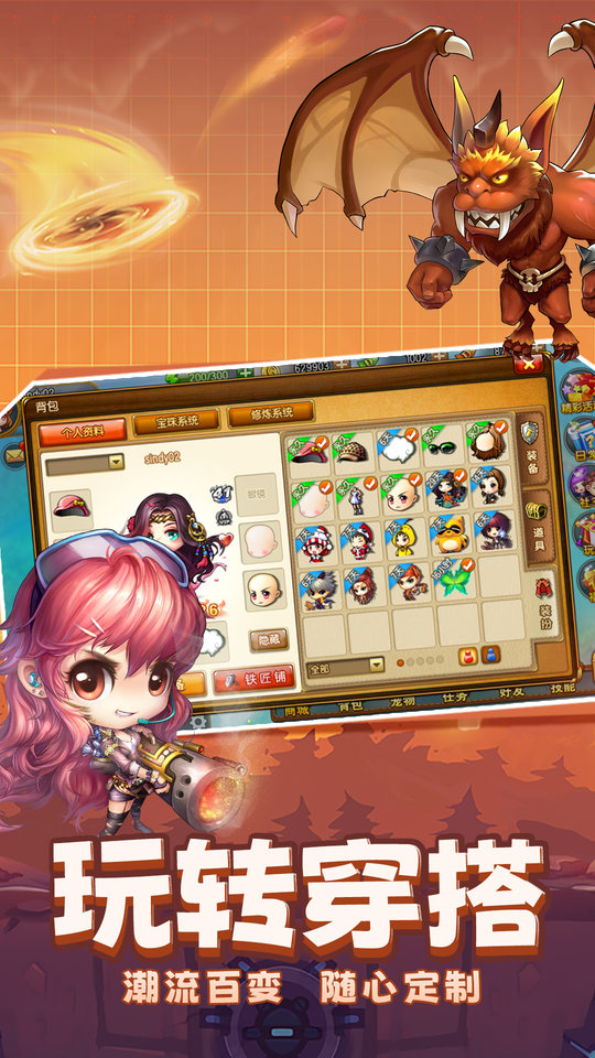 2、Q版画风,精美的人物肖像,你还心动吗?不断合成你的武器装备,可以大大增强你的实力,让堡垒更漂亮。