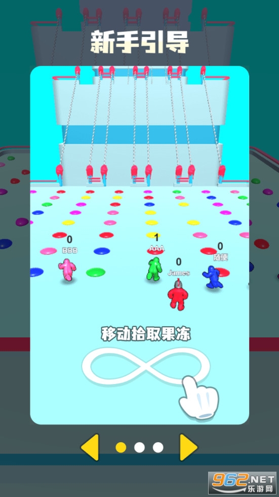 果冻人大乱斗游戏,平台上有着各种果冻粒,玩家需要收集同一种颜色的果冻粒,然后去搭桥前往另一端,超越一个个对手,抢先到达终点,游戏还有着各种服装可以解锁体验,喜欢的朋友可以下载试试。