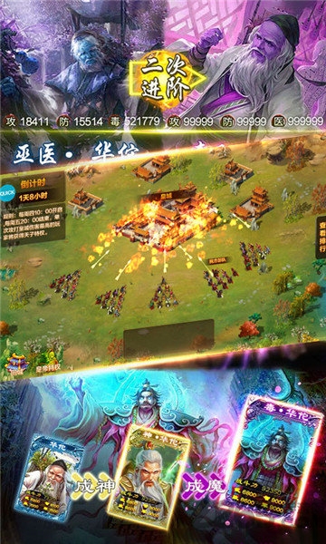 华佗曰当午手游是非常好玩的三国题材的战斗策略冒险手游,华佗曰当午手机版玩家在上面进行各种不同类型英雄收集,建立属于自己的势力进行战斗,拥有着丰富的武器装备进行使用,更有转职玩法等你来,恢弘的游戏场景,快来2265安卓网下载吧!