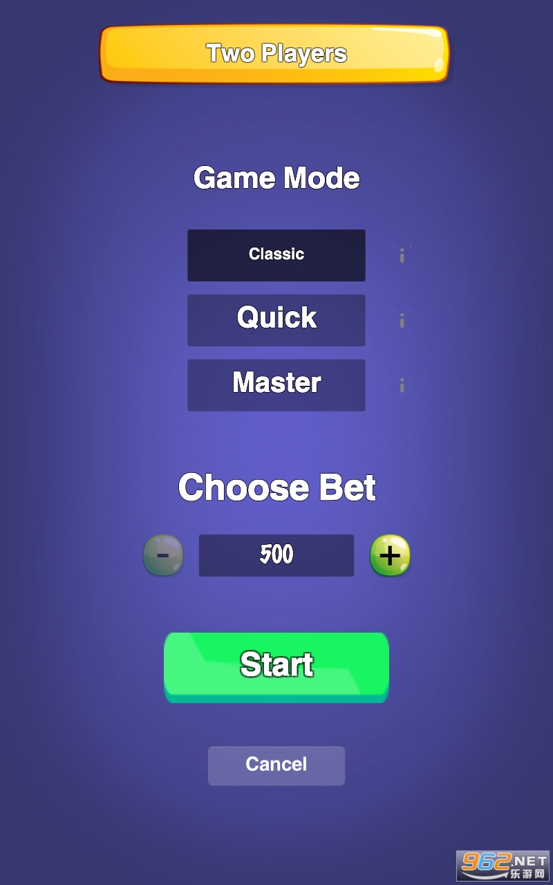 两个玩家和四个玩家的在线模式,经典,快速和大师模式。