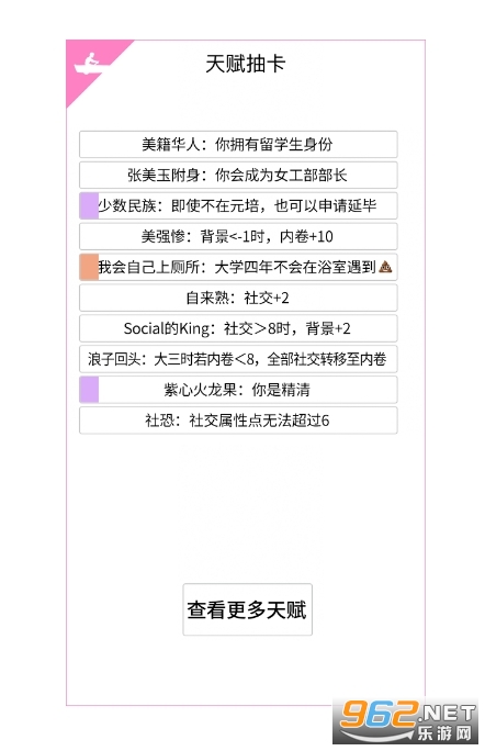非常好玩的一款以重开大学玩法为核心的休闲游戏,设置好不同的数值开始你的大学体验,各种有意思的玩法元素,精彩的剧情故事,代入感极强,快来下载吧!