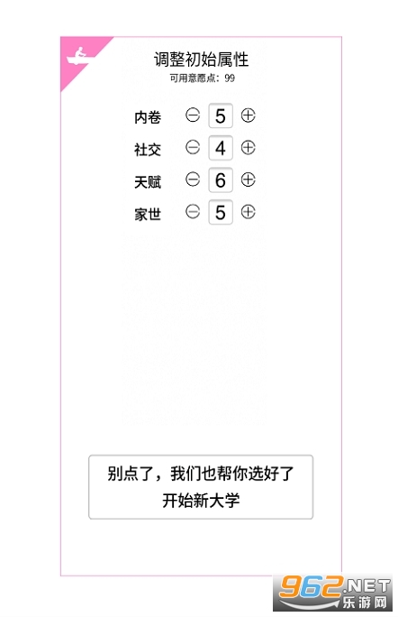 1.通过你的各种不同的属性的调整,你可以开始一个全新的大学生活,对于每个玩家而言你都有重新开始大学的权利。