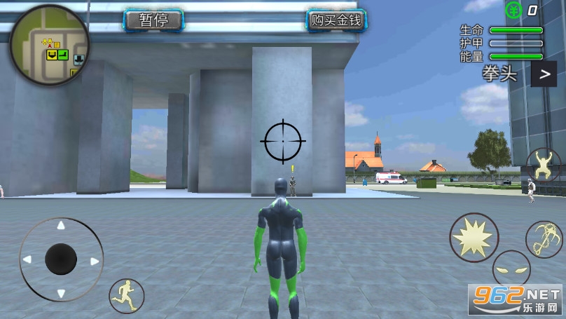 3D城市冒险游戏,可以像蜘蛛侠一样在高楼大厦之间飞跃,可以利用激光眼去进行攻击,也可以解锁枪械等武器进行战斗,自由度高,喜欢的朋友可以下载试试。
