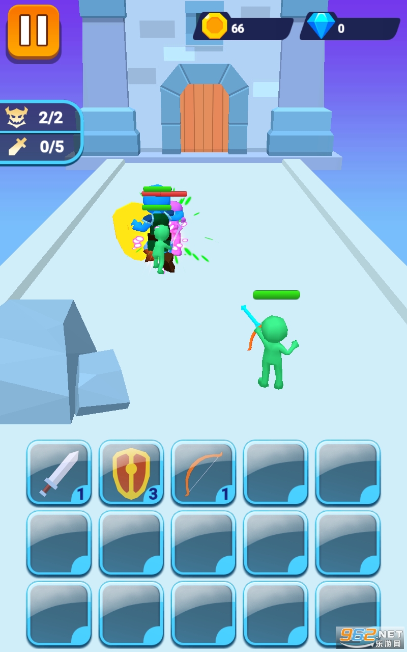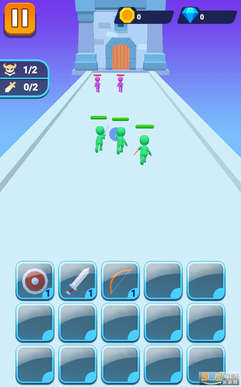 一开始,你有三个士兵:盾牌、剑士和弓箭手。