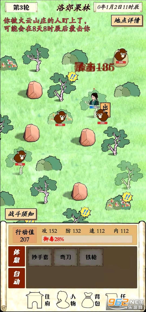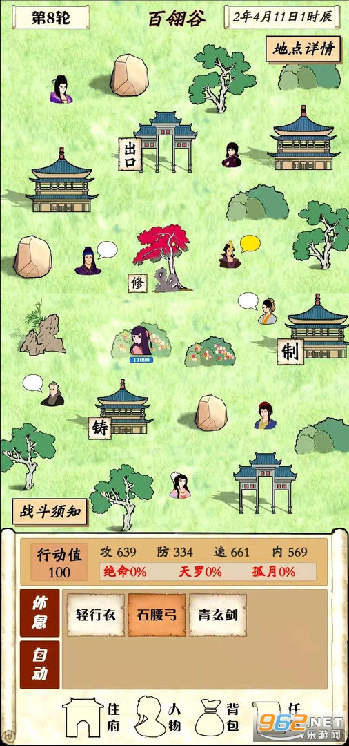 3、你可以带领帮派弟子四处挑战门派,帮助你获得威望,同天下搏斗获得资源。