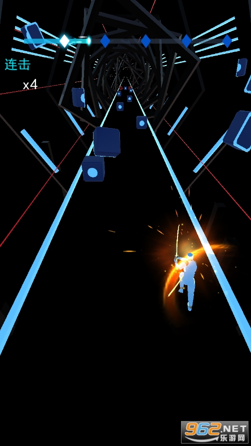 Beat Blade是一款酷炫的赛博朋克风音乐跑酷游戏,游戏中玩家随着劲爆歌曲体验节奏光剑的玩法模式,武士会在光影隧道上奔跑,不断变换奔跑方向,击碎隧道里面的方块,躲避看似漂亮实则很危险的拦路虎,不要死亡,坚持到终点,提升combo获取更高的分数,只需使用一个拇指来控制角色,就可以切块并躲避陷阱,直到轨道的尽头。华丽的霓虹光影效果给你极致的视觉体验。