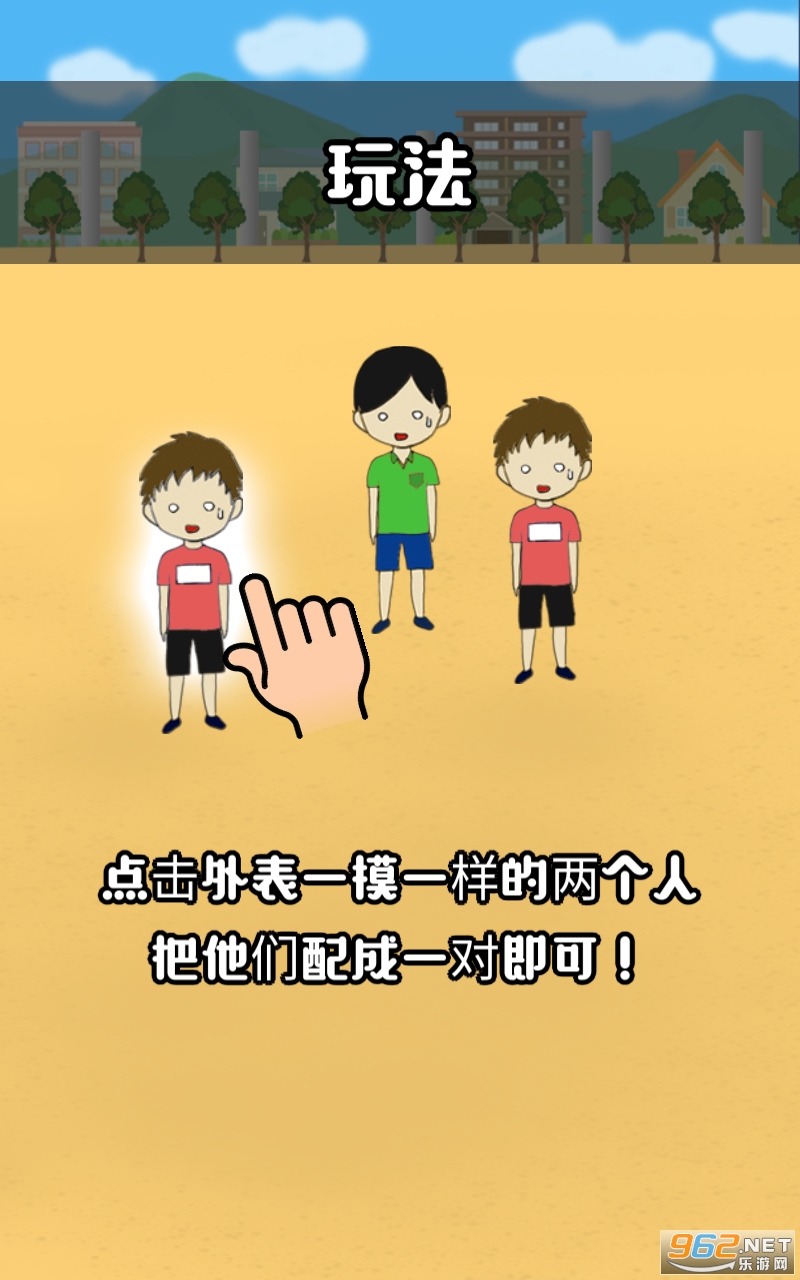 一款玩法简单却能让人入迷的小游戏,玩家只要在一群学生中将一对对外表一模一样的同学配对起来即可。