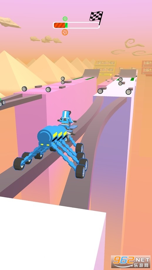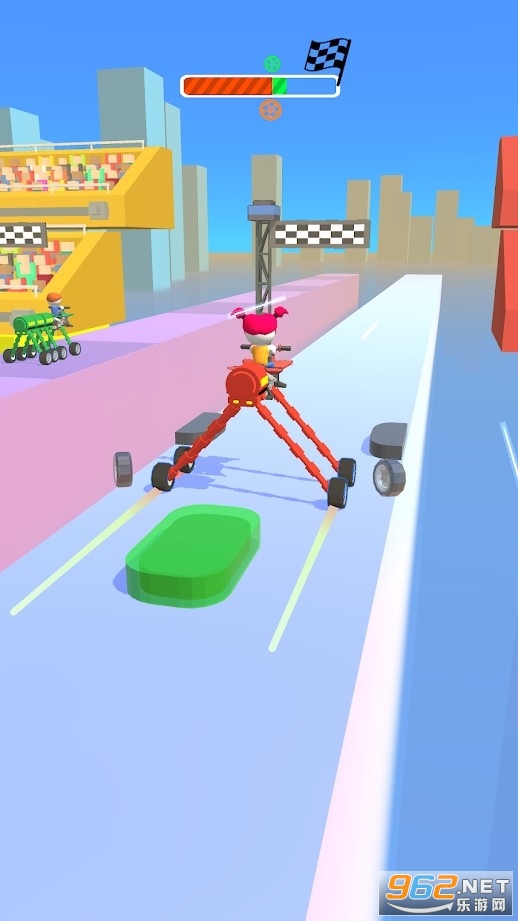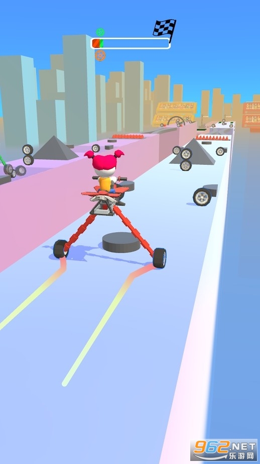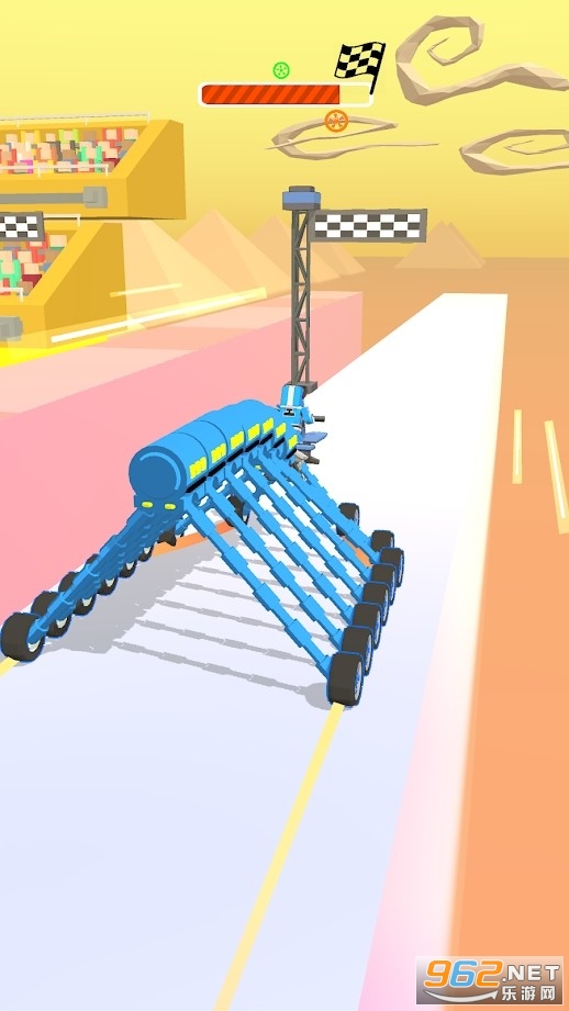 《灵活的车轮Springy Wheels》是一款全段时间抖音上非常火爆的休闲闯关游戏,操作小车闯关,在赛道上疯狂收集车轮,收集到的车轮越多车身越长,就会有更强的动力,飞跃平台那简直不要太轻松,并且超长的车身也方便自己最后滑行得更远,让自己收获更多的金币和道具奖励。