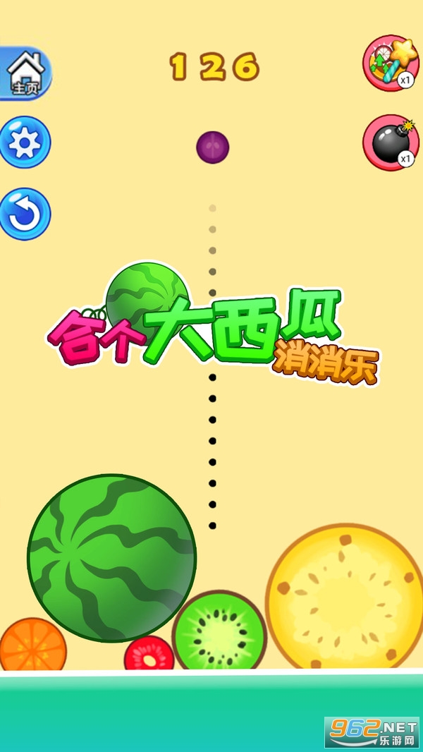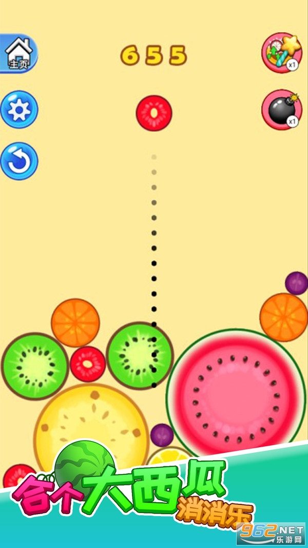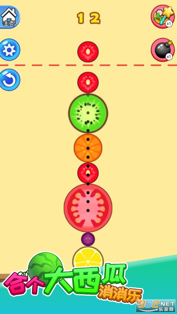 合个大西瓜消消乐是一款休闲益智类游戏。 结合经典2048,开创全新扔球。按住把球球拖到正确的位置,抛下去,合成大球。魔性水果和数字球球合并,乐趣爽不停! 游戏玩法: 将两个相同的水果合成一个更大的水果,合成的水果越大,获得的分数越多。