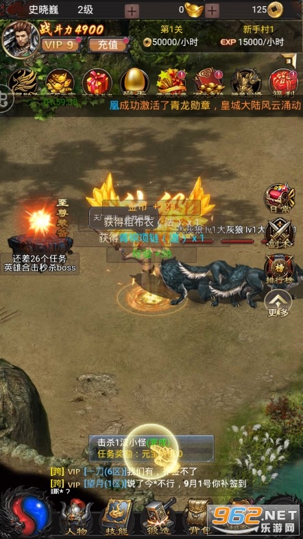★进入游戏内通过邮件获得:VIP9,88万元宝、1亿金币、永恒神剑*1、精美时装*1;