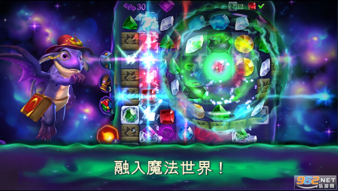 1、简单的玩法和操作,三消的特色,将相同颜色的宝石消除