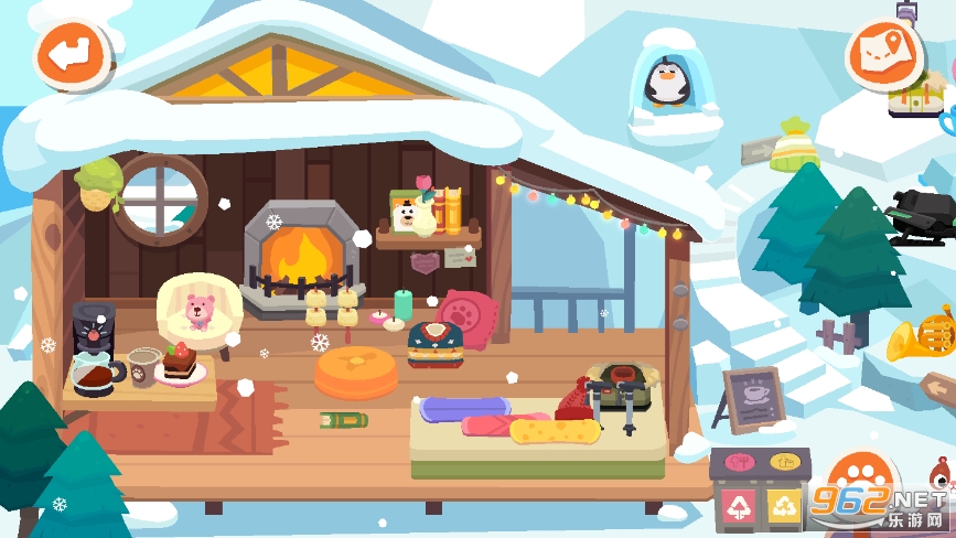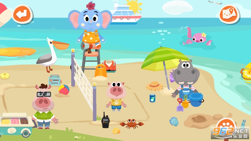 熊猫博士小镇度假游戏中的角色、服装、发型、宠物和道具等与熊猫博士小镇系列的其他游戏互通,更多乐趣等你体验!点击屏幕右上角的橙色地图按钮,即可一览你可访问的所有区域。