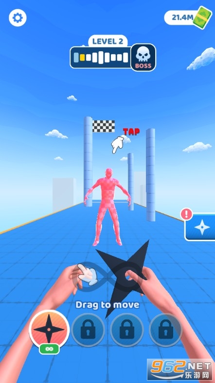 《忍者砍击Ninja Slash》是一款忍者投掷飞镖杀死敌人的闯关冒险游戏,成为忍者大师,手持飞镖并精准投掷,干掉所有敌人,清除路上的障碍物,不必担心我们手中的飞镖是无限的,所以大家可以尽情的去投掷,但是大家要注意把控自己与敌人之间的距离,不要让敌人攻击到你。