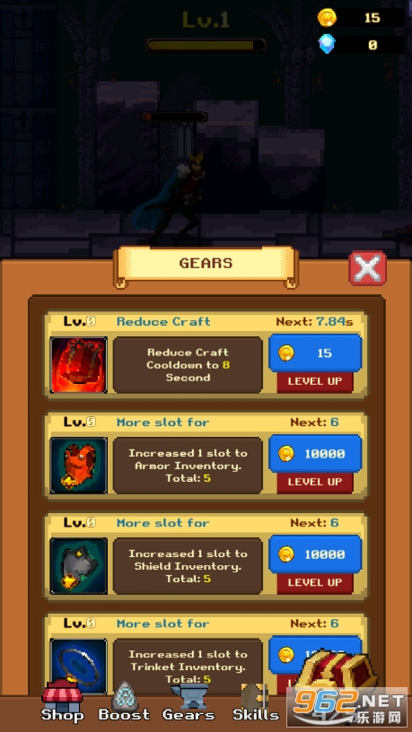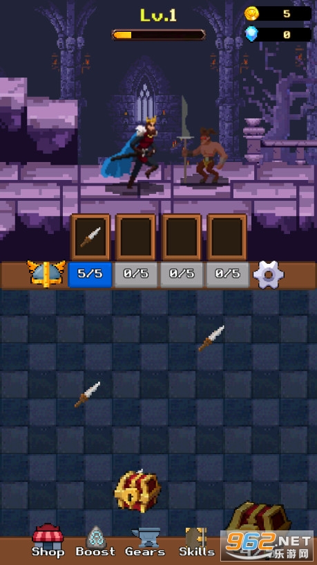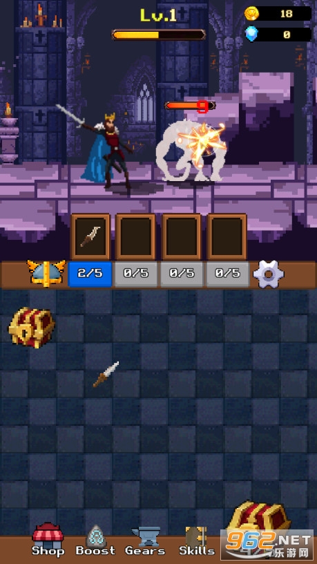 比较好玩的一款复古像素风RPG闯关游戏,使用英勇的亚瑟王与地城之中的怪物们进行战斗,通过宝箱内产出的武器道具来制作更为强力的武器,帮助亚瑟王更好的通关,赢取更多的钻石和金币奖励,及时的调整人物装备搭配,避免卡关出现!
