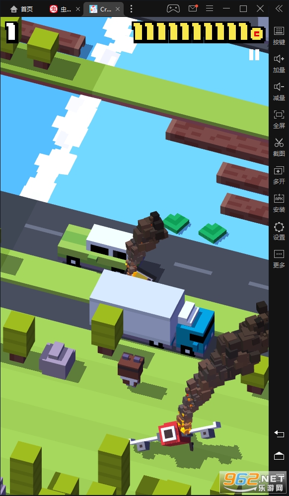 4、横向移动寻找生机。玩家们在玩这款游戏的时候不要陷入思维定势只会竖向移动,其实有时候横向移动也会有很好的效果,尤其是当人物快要脱离画面,而马路上的车辆也马上开来,这时候原地不动和向前直行都是死路,我们可以试试横向移动来找出一条生路,或许能给我们带来意外的惊喜。