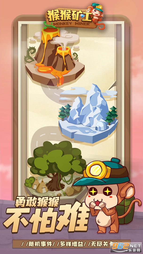 3、只需操控可爱的猴子来进行挖矿挑战即可,画风上给大家带来不错的舒适感。