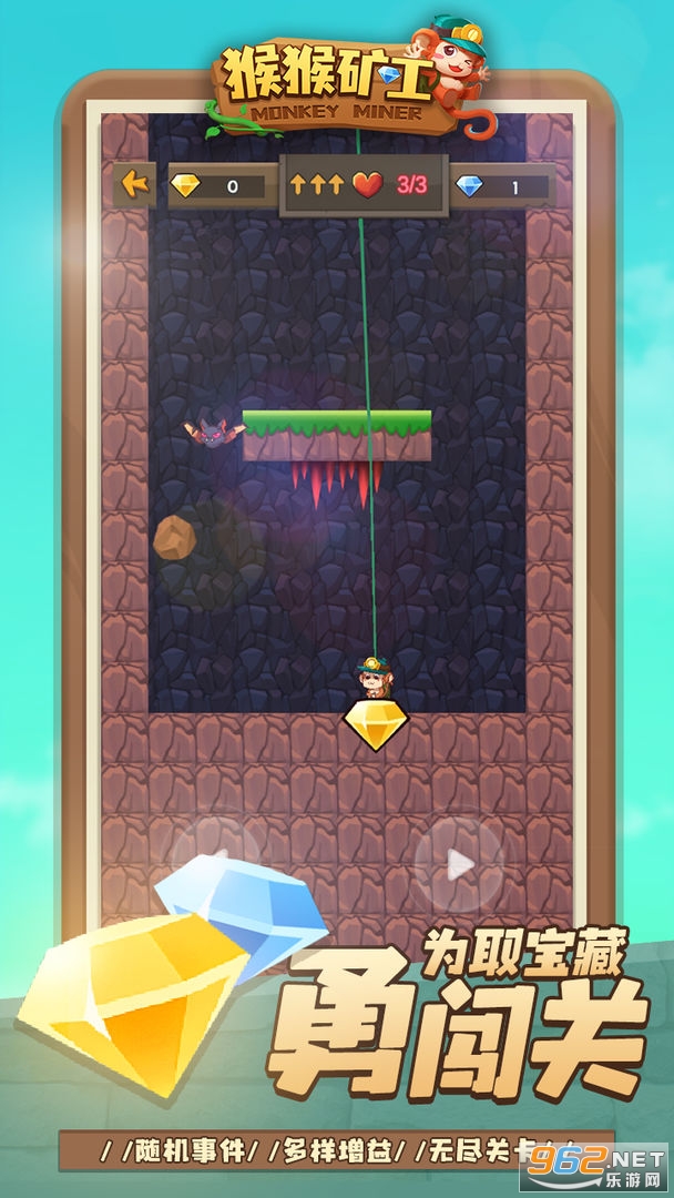 猴猴矿工游戏是一款融合了roguelike元素的休闲闯关小游戏,拿起铁镐,戴上钢盔!为了获得传说中的神秘宝石,猴猴终于要开始他的冒险啦,感兴趣的朋友不要错过这么好玩的游戏了。