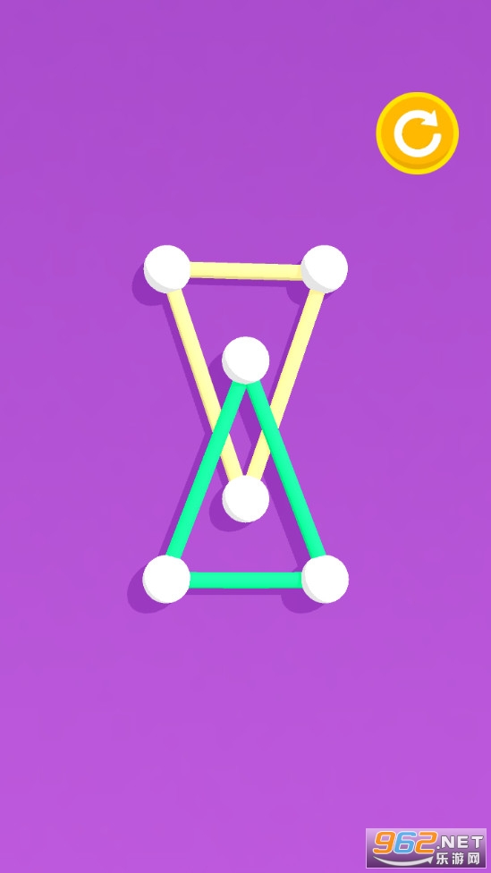 《Rope Lock游戏》是一款画面简约的解绳结的休闲手游,游戏每个关卡会给出不同的绳结模型,玩家的任务就是让解开绳结让这些绳子不相互重叠交叉,其中的白色固定按钮是可以相互变换位置的,注意合理的去变换一些节点的位置,让交叉的线或者不同颜色的线分离开。