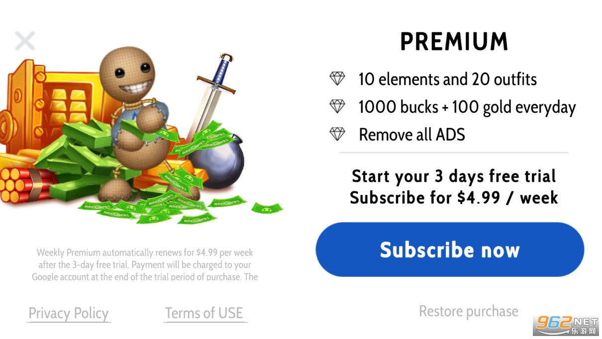 玩家在游戏里面可以解锁球杆,锤子,剪刀,斧头,刀,以及手枪,狙击枪等不同的武器道具,去杀死布娃娃,不同的武器会有不同的攻击效果,解压感十足!