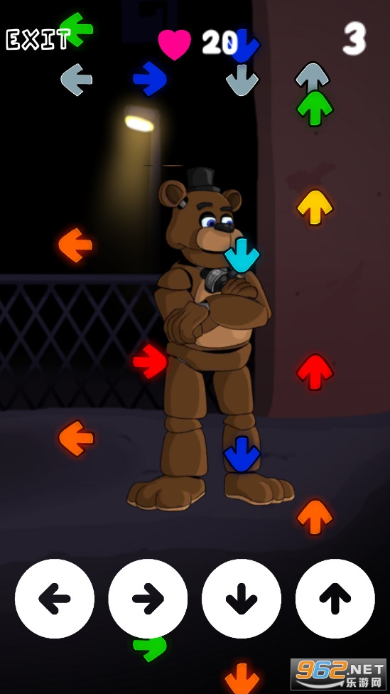 《周五夜放克午夜后宫最新版》是款非常不错的音乐题材的闯关手游,该游戏版本将热门恐怖游戏《玩具熊的午夜后宫》中的玩具熊移植到了其中作为主角并且进行游戏挑战。游戏内随机生成音符音乐需要你去进行按键完成操作,音符推出的速度非常的快,注意观察快到落点附近的率先完成它们的确认操作!