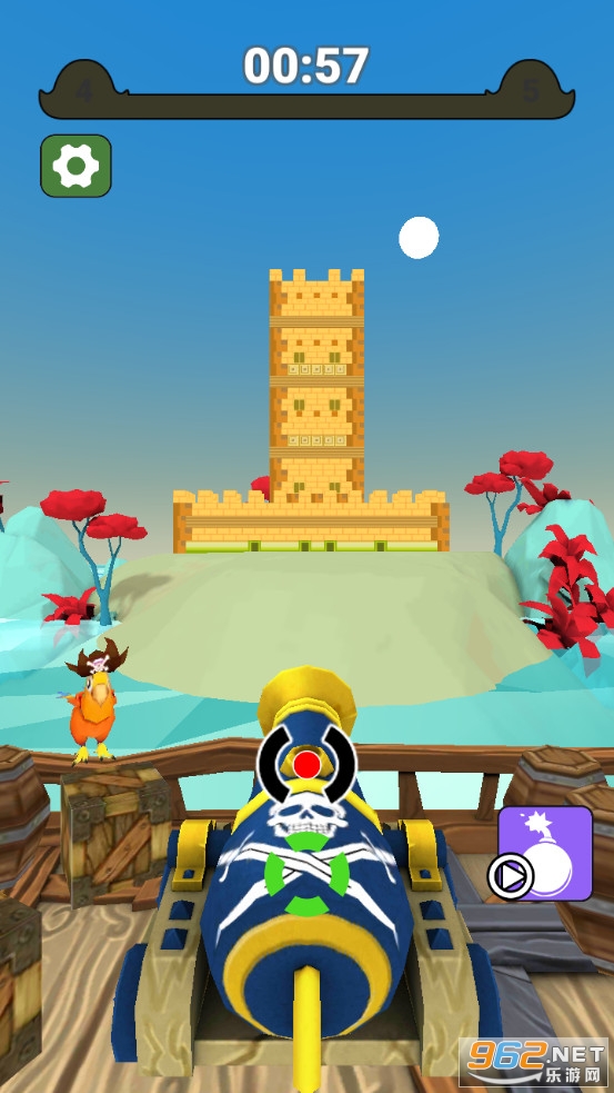 发泄向休闲游戏,利用大炮去轰炸各种建筑,玩法简单,有着时间限制,调整合适的角度去发射炮弹,炸毁建筑,小编带来的是海盗的重炮破解版,不用看广告就能获得奖励,也就是可以获得大威力炮弹,一发炸毁建筑。