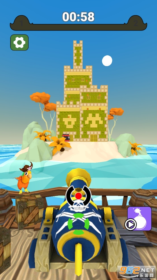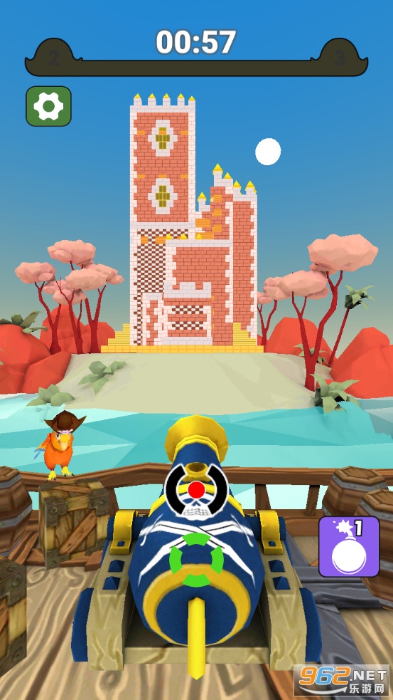 海盗的重炮是一款操作很简单的休闲游戏,玩家在游戏里需要控制自己的海盗,调整方向与力度,发射炮弹,将前方建筑给消灭殆尽。